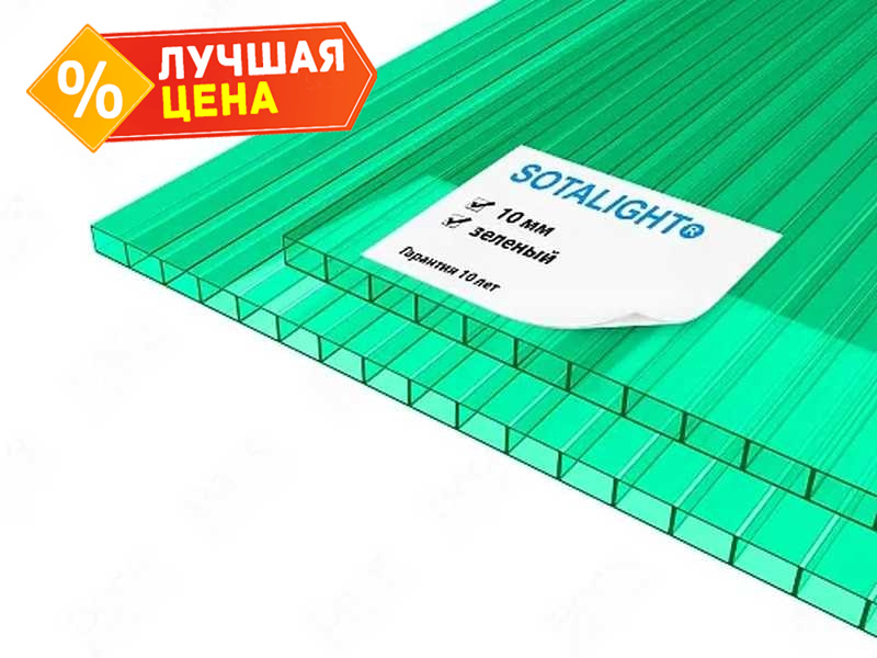 Сотовый поликарбонат 10 мм SOTALIGHT зелёный 2100х6000 мм