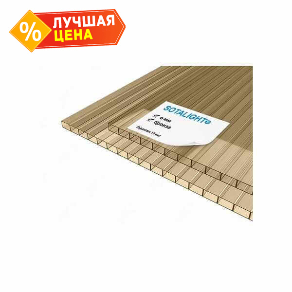 Сотовый поликарбонат 6 мм SOTALIGHT бронза 2100х12000 мм - это прочный и легкий материал, который отлично подходит для использования в различных строительных и дизайнерских проектах. Поликарбонат обладает высокой прочностью и устойчивостью к воздействию внешних факторов, что делает его идеальным выбором для создания надежных и долговечных конструкций.