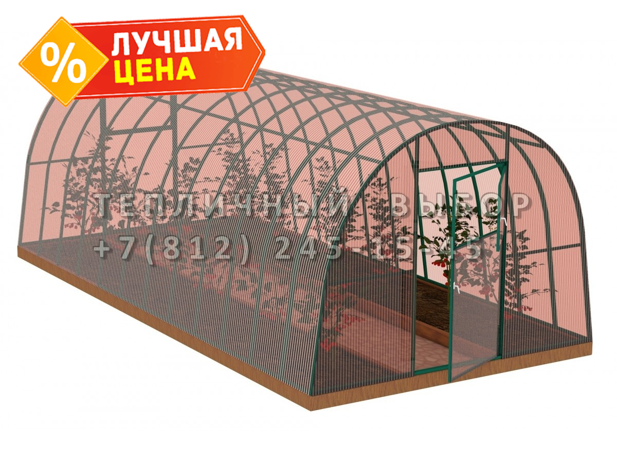 Теплица из поликарбоната-фито Усиленная Арочная 3х10 h=2.1 м профиль 30х30 мм Зеленый