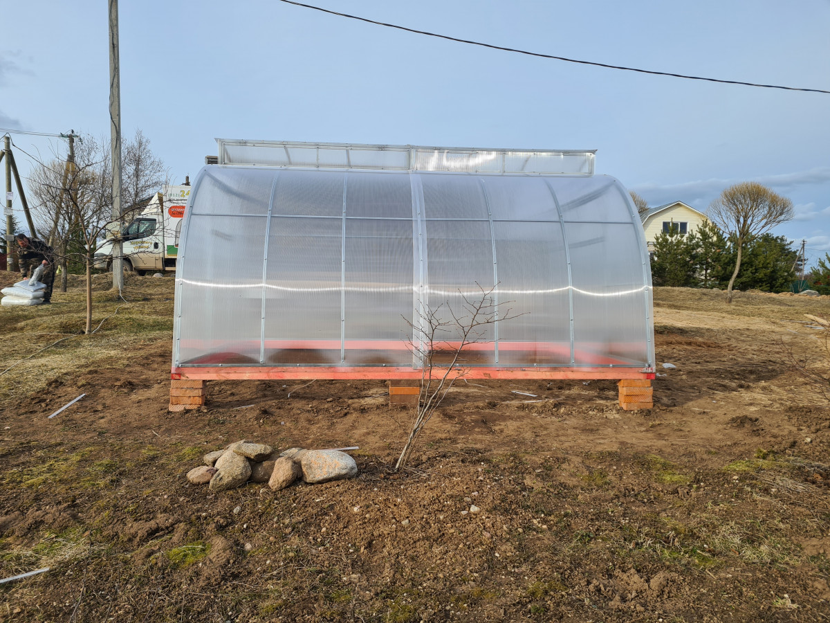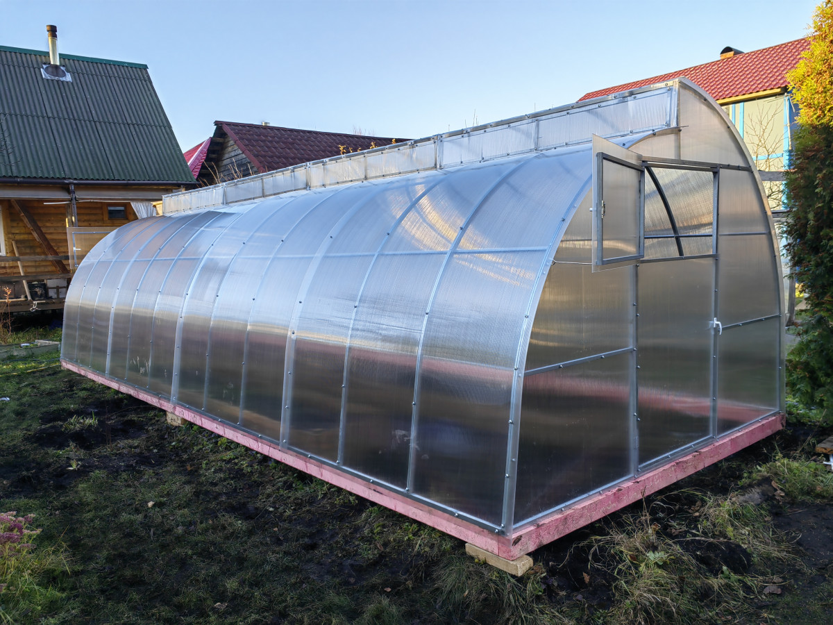 • длина фрамуги соответствует длине теплицы, высота 22 см, открывается изнутри и фиксируется в открытом состоянии с помощью ограничителя;